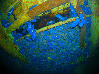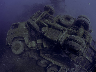 Kilka ciężarówek leży poza statkiem, można przepłynąć pomiędzy nimi i pooglądać ładunek jaj. Potem znowu upper car deck, odrobinę głębiej.