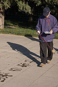 Potem pojechaliśmy taksówką do Świątyni Nieba (Tiantan). Jak zawsze w Chinach świątynia to nie jest jeden budynek, tylko kompleks zazwyczaj różnych budynków i zazwyczaj otoczony parkiem. Właśnie taka też jest Świątynia Nieba. Jak dla nas - o wiele lepsza niż Zakazane Miasto. Odbywały się w niej najważniejsze ceremonie państwowo-religijne. A główny budynek Pawilon Modlitwy Rocznej jest naprawdę piękny - zbudowany z drewna bez gwoździ i mający kształt kolisty z potrójnym dachem z błękitnych dachówek.