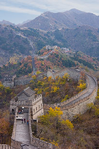 Wejście na mur kosztuje 45Y razem z małym CD. Mają nawet swoją stronę http://www.mutianyugreatwall.com. Dodatkowo 50Y kosztuje kolejka linowa w obie strony. Ale warto wziąć kolejkę, bo wejście na tą górę może zająć 2 godziny, no i jest strasznie męczące ;). W tym miejscu teren jest bardzo górzysty, a mur został wybudowany normalnie na grzbiecie gór. W związku z tym przejście się tym murem nie jest zwykłym spacerkiem. My chcieliśmy dojść do drugiej kolejki (jak nam się wydawało), którą zauważyliśmy w oddali. Niestety źle oceniliśmy odległość do tego miejsca i jak w końcu wypatrzyliśmy, że nie jest to kolejka linowa tylko krzesełkowa i prawdopodobnie nasze bilety na nią będą nieważne. Stwierdzenie, że musimy wracać, kosztowało nas dużego wysiłku powrotu pod górę ;(. Spędziliśmy w sumie na samym murze 3 godziny zwiedzając między innymi różne wieżyczki po drodze.