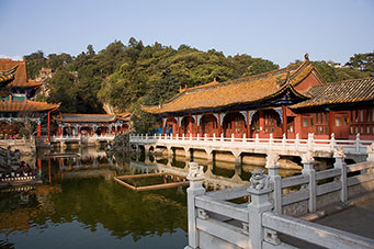 Sam klasztor nie jest bardzo imponujący, ale warto tu być uwzględniając sławę tego miejsca. Niesamowita też jest ścieżka górska dookoła klasztoru, ale widziałem ją tylko na zdjęciach – żeby tam dotrzeć, potrzebne jest zdecydowanie więcej czasu. Myśmy doszli tylko do lasu pagód – starego cmentarza. Z powrotem łapiemy bus do bramy za 10Y – w wielu wielkich chińskich parkach jeżdżą długie melex'y a nawet, jak tutaj, busiki spalinowe. Chińczycy raczej nie lubią się męczyć.