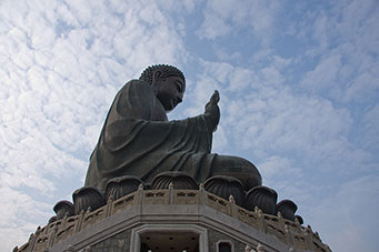 Dziś chcemy zwiedzić największy na świecie, wykonany z brązu, posąg siedzącego Buddy (Budda Tian Tan) na wyspie Lantau. Dojeżdżamy MTRem do Tung Chung, bo wcześniej na mapach MTRu zauważyliśmy, że można dostać się tam kolejką linową. Niestety, projekt się opóźnił, a mapy już wywiesili, więc wiele osób szuka kolejki, która nie istnieje.