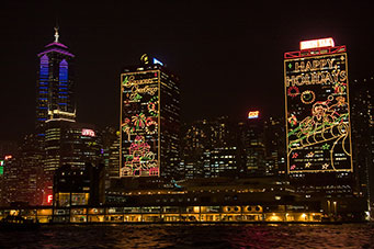 Wieczorem idziemy zobaczyć show „światło i dźwięk” na promenadzie Kowloon z widokiem na Hongkong. Z głośniczków cicho leci muzyka, a wieżowce naprzeciwko strzelają w niebo laserami i szperaczami.
