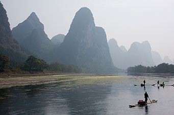 W niektórych miejscach wzgórza schodziły wprost do rzeki, gdzie indziej były małe „plaże”. Ale pod horyzont widać było wzgórza jakby pozrzucane z nieba. Chińczycy dla wielu z nich wymyślili nazwy z odpowiednimi legendami, jak zawsze super wymyślne, np. „Wierzchołek Trzymającego Pióro”, „Wzgórze Klatki Kurczaków”, szczyt „Ogon Ryby”, „Ośmiu Nieśmiertelnych Przekraczających Rzekę” lub „Wzgórze Dziewięciu Koni”…