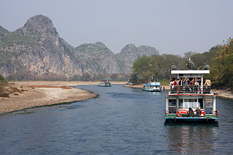 Na początku jak wyruszyliśmy przewodniczka opowiadała coś o tym co zobaczymy itd. – jak zawsze na wycieczce. Potem dużo osób poszło na górny pokład – stamtąd widok był niesamowity. W sumie już po drodze do przystani widać było piękne wapienne wzgórza o przedziwnych kształtach, ale widok z rzeki był po prostu zachwycający. Gdzieś kiedyś przeczytałam, że jest to kwintesencja chińskiego krajobrazu. I w zupełności się z tym zgadzam.