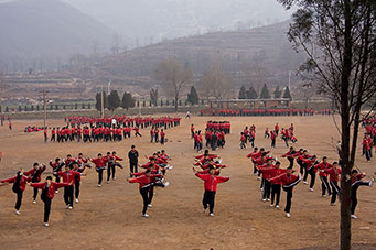 Kilkadziesiąt kilometrów przed zaczynają się wielkie place z mnóstwem dzieci i młodzieży ubranych w kolorowe stroje i dresy. Są to uczniowie licznych szkół walk wschodnich – jednak marketingowo zawsze lepiej powiedzieć, że chodziłeś do szkoły kungfu niedaleko Shaolin ;-).