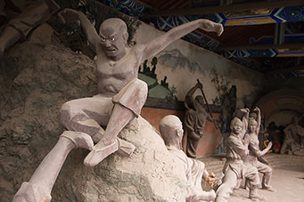 Park jest na obrzeżu miasta, gdzie docieramy miejskim autobusem. Wejście do niego nie jest za tanie – 68Y/os., ale za to sam park też nie jest zwykłym parkiem w polskim rozumieniu. Chińczycy bardzo mocno postarali się – mają piękny sztuczny wodospad, małe zoo, różne formacje skalne o wyglądzie różnych postaci, np. ogromnego wielbłąda, świątynię buddyjską no i najfajniejsze – jaskinie.