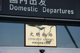 Lotnisko jest najdalej od miasta ze wszystkich lotnisk odwiedzonych w Chinach, nie bierzemy więc taksówki, a wsiadamy do Airbus'u dowożącego do dworca kolejowego, zwłaszcza że nasz hotel jest obok dworca.