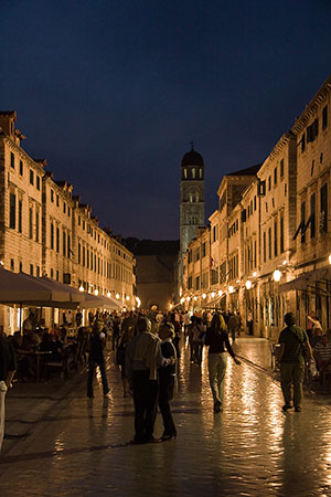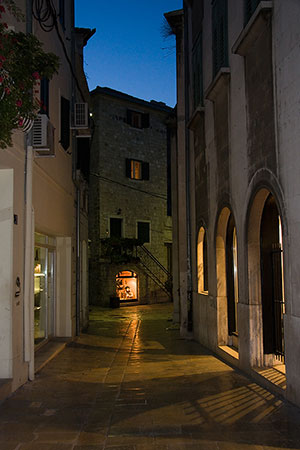 Ale oprócz zwiedzania trzeba było jeszcze znaleźć knajpę na kolację - bo znowu zauważyliśmy, że jest mnóstwo barów, a restauracji nie bardzo. Na starówce przy "Narodnym placu" była super fajna restauracja gdzie pachniało dobrym jedzeniem, ale tutaj już ceny były dosyć wysokie (80 KUN za bardzo proste danie) więc szukaliśmy dalej. Udało się nam po 15 minutach znaleźć pustą restaurację w uliczce gdzie prawie nikt nie chodzi z cenami prawie o połowę mniejszymi. Udało się tam zjeść nawet miejscowe dania - pleskavicę (okazało się że jest to mielone wołowe mięso w postaci steka) i nadziewaną ryżem i mięsem paprykę - wszystko bardzo dobre. Bardzo miła była kelnerka - studentka matematyki i informatyki pochodząca z Rijeki.