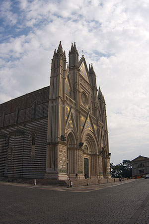 Odpoczywamy w Orvieto, miasto bardzo ciekawe, dobrze karmią, chociaż dość drogo. W dzień zwalają się tu tłumy turystów, ale wieczorem jest luźniej, mało kto widać tu śpi. Największa atrakcja jest duża katedra "w paski" ;-), z XIII w. z olśniewającą fasadą w misterne ornamenty, rzeźby i mozaiki - przepiękne. Freski w kaplicy przedstawiają Apokalipsę - podobnie najbardziej sugestywnie na świecie.