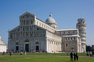 Rano wyjeżdżamy (samochód wraca z garażu cały), po drodze zwiedzamy Pizę. Katedra, wieża i okoliczne budynki znajdują się na ogromnym wypieszczonym trawniki, a całość wygląda trochę sztucznie. Moim zdaniem przesadzili z restaurowaniem, teraz całość wygląda nierealnie. Wieża owszem, krzywa, a na całe zwiedzanie wystarczy godzina.